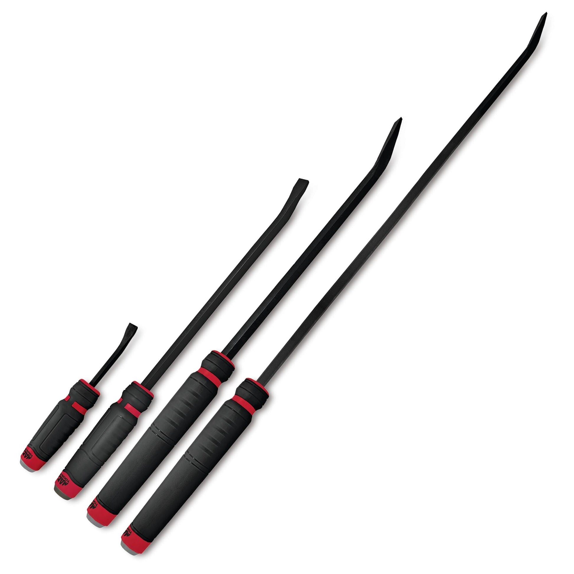 4-PC. Capped Comfort-Handle Curved-Head Pry Bar Set – Red
