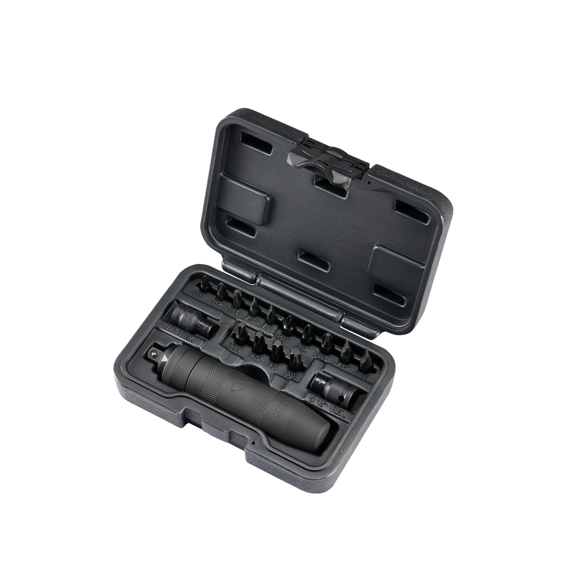 - 5/16-inch Hex Bits: 9/32”, 5/16”, #1, #2, #3